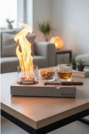 Özel yüksek sıcaklık betonu ile üretilmiş olan masaüstü şöminemiz, yanması sonucu herhangi bir duman, is ve koku çıkartmayan biyoetanol yakıt ile yanmaktadır. Burner içerisindeki seramik yünü sayesinde devrilmeye karşı yakıt akması engellenmiştir.